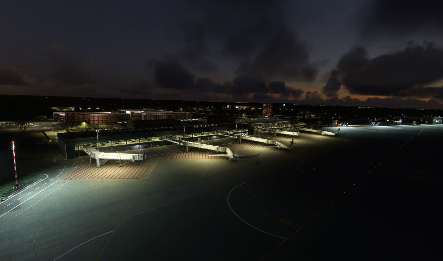 I was very happy with the night time interpretation of the airport. Lighting levels were not overdone and seemed to match the light source both in intensity and illuminated areas. This airport does not allow for takeoffs or landings between 2100z and 0500z so most operations will normally take place between dawn and dusk.