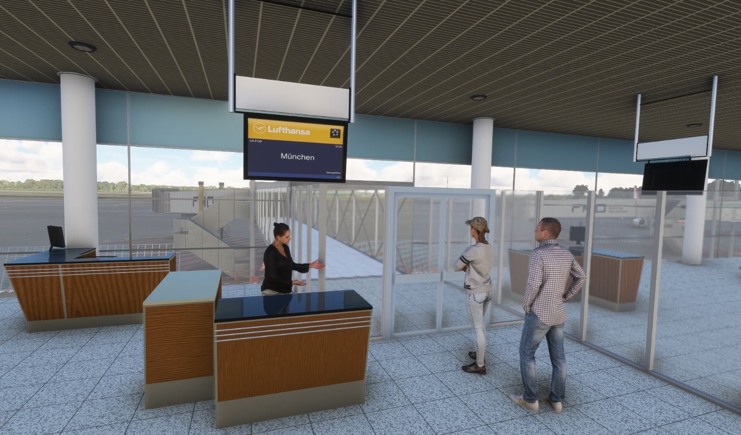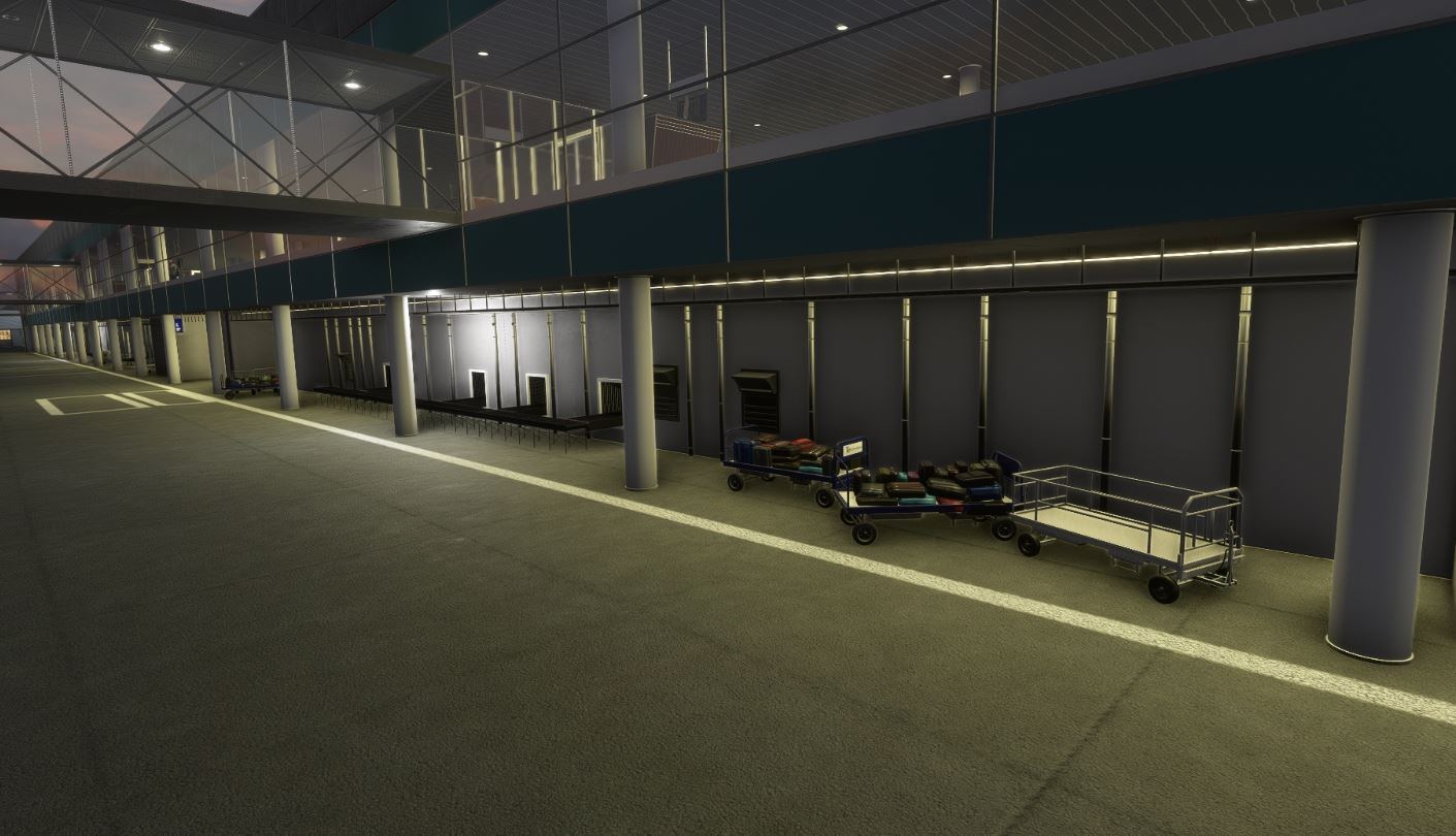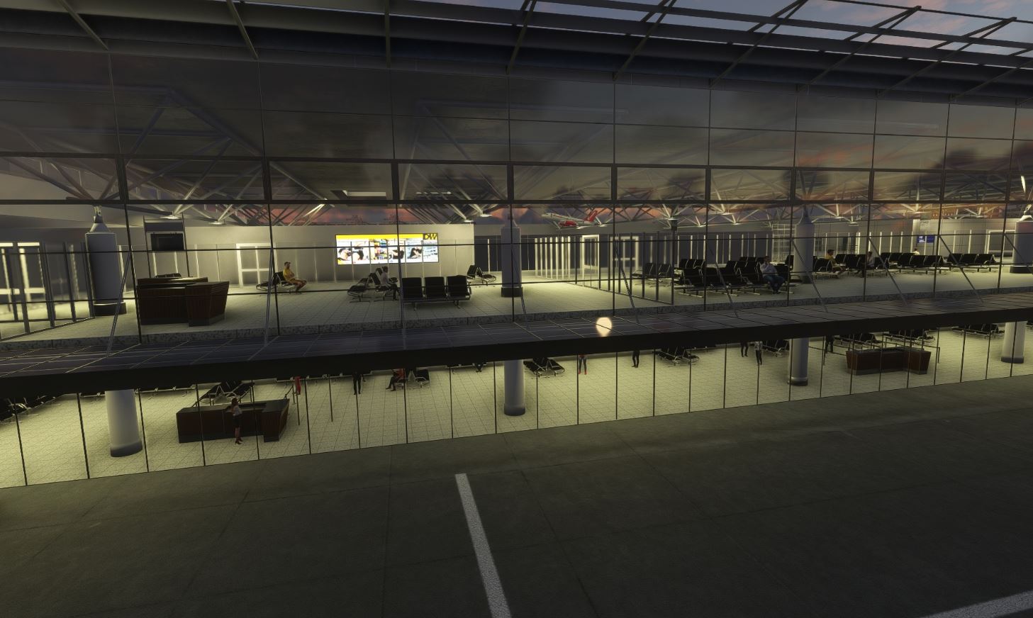 For those of you who like to explore and appreciate the interior areas of the passenger terminal I think you will be quite pleased with the level of detail. It was very easy to distinguish the different areas we expect to see at any airport; boarding gates, security screening, waiting areas, open lobby areas, etc. Most have also been populated with some people to give it that extra bit of realism. The interior modelling is visible from the outside as the large floor to ceiling windows are fully transparent; makes for an interesting view when parked at a jet bridges whether it is daytime or night time.