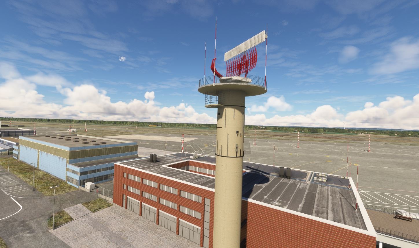 Several animations are included; there are flags and windsocks that appear to move with the winds, there is a rotating radar antenna and the terminal entrances have revolving doors.