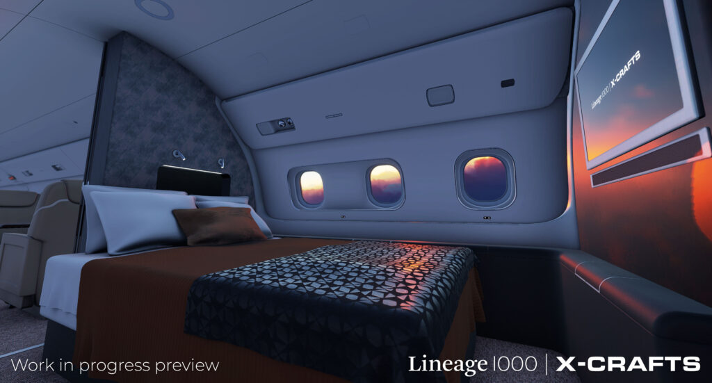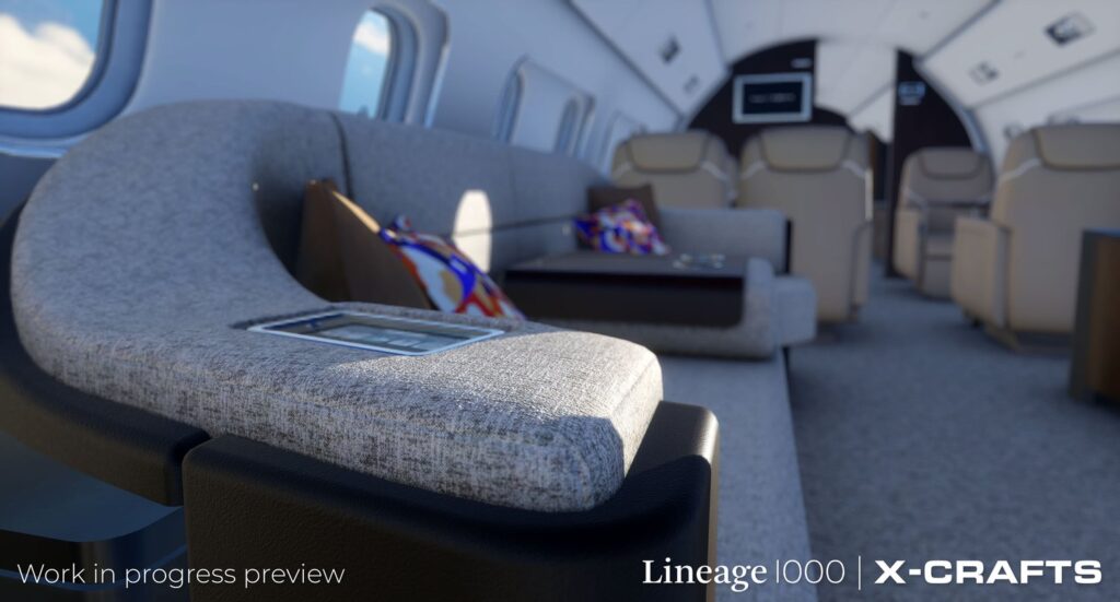 X-Crafts is close to releasing its highly detailed Embraer Lineage 1000 for X-Plane, a $50M ultra-large business jet derived from the Embraer 190 regional jet. This luxurious aircraft model promises an 8500 km range, allowing long-haul flights from London to New York or Dubai in comfort. The cabin is crafted with ultra-high-resolution materials optimized for performance, designed using the latest innovations in X-Plane 12 to meet the visual standards of modern simulators. It includes separate zones for passengers, a cozy king-sized bed, sofas, and seating for 14, allowing users to experience the opulence of real-world luxury air travel.