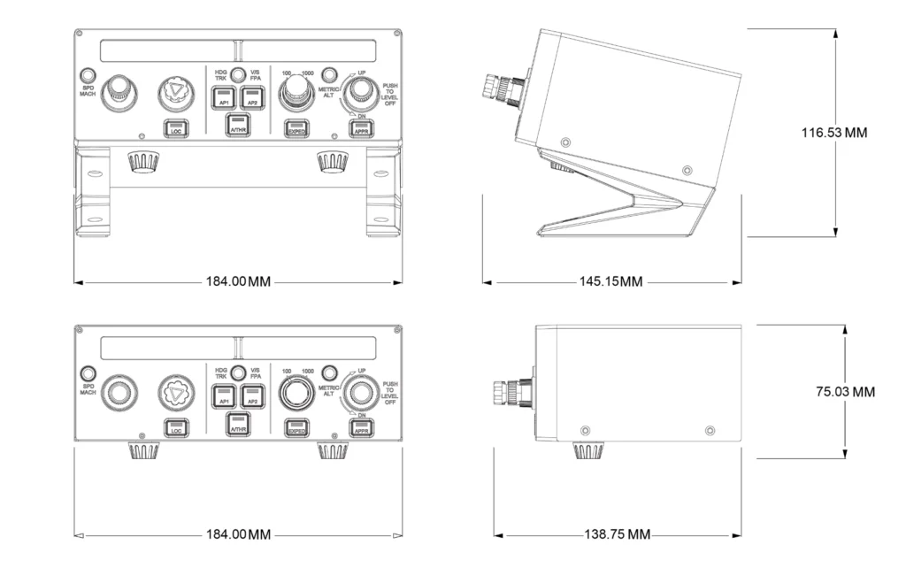- Autopilot control switches (AP1, AP2, A/THR) feature a 2.5mm press stroke, delivering a realistic “click” for precise feedback.