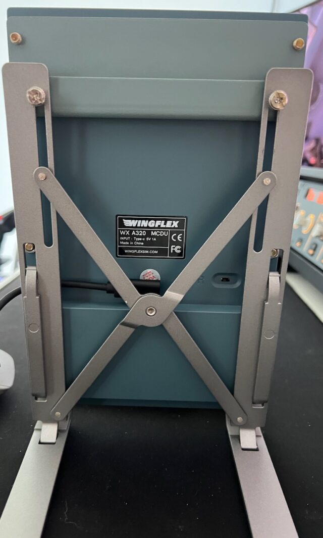 The Wingflex A320 MCDU is connected with the included USB-A to USB-C cable.