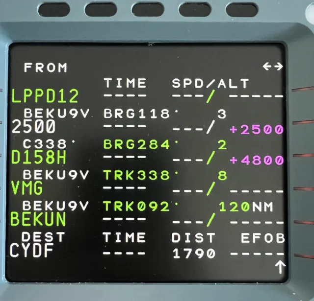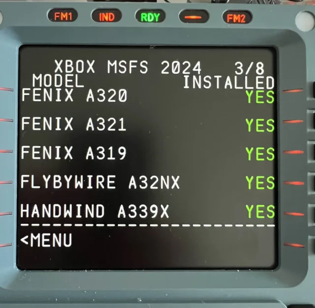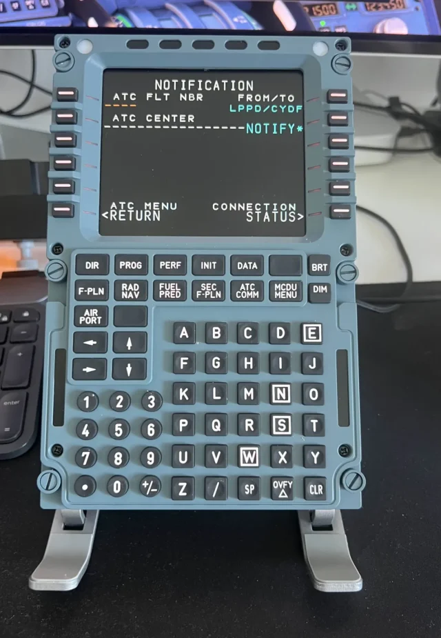 The device is dark until I give the machine power, that’s correct. And now the strength of the Wingflex MCDU is revealed, and that is that the display is razor sharp, see for yourself in the following images: