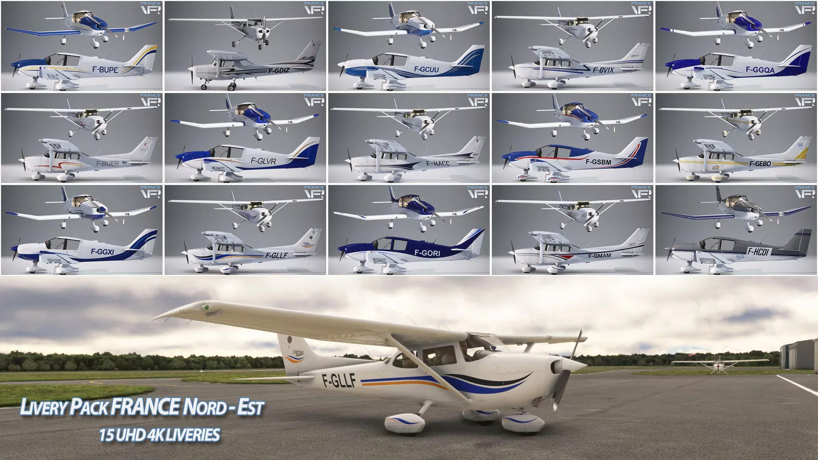France VFR – Livery Pack France North-East MSFS brings 15 ultra-high-definition 4K liveries for popular aircraft like the DR400, Cessna 172, Cessna 150, CAP 10, PC6, and DA40NG in Microsoft Flight Simulator 2020. These liveries faithfully replicate real-world flying club aircraft from airports and airfields covered by France VFR’s North-East scenery, offering an authentic regional aviation experience. Additionally, the pack includes two registration variants, providing even more customization options for virtual pilots.
