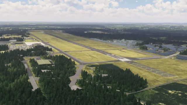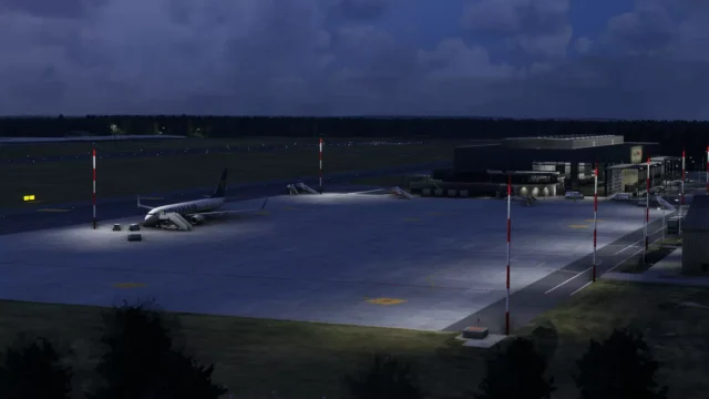 - Dynamic Lighting: The scenery includes dynamic lighting effects to simulate realistic night flying conditions. This includes the correct placement and intensity of runway and taxiway lighting, as well as general ambient lighting on the airport grounds.