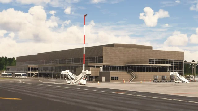 - Custom 3D Models: All essential buildings and structures of the airport, including the terminal, hangars, and other outbuildings, have been created as custom 3D models. This aims to ensure high accuracy in the representation of the real airport architecture.