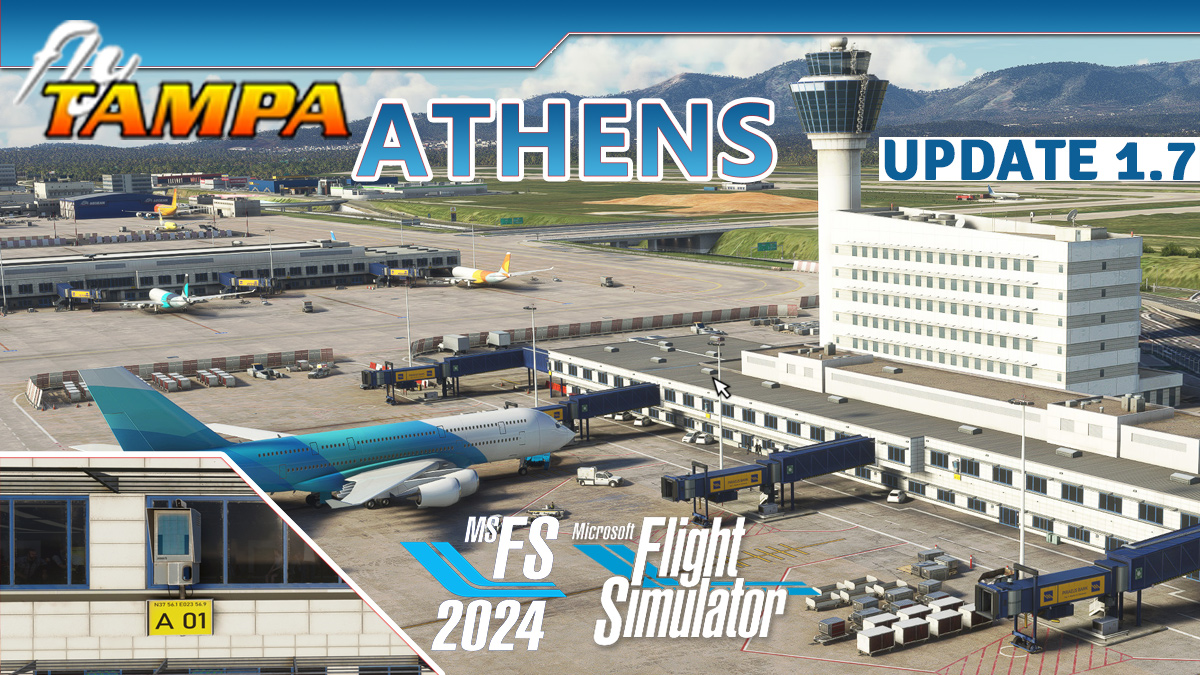 New update available for the major Greek airport of Athens LGAV : FlyTampa has released version 1.7 of their scenery for Microsoft Flight Simulator 2020 and 2024, introducing several visual and functional enhancements. A major highlight is the improved Hangar 56 area, now featuring a new rear model and updated Aegean and CAE branding, along with refreshed logos for both Hangar 56 and 57. Additional updates include a solar farm extension, a newly added General Aviation ramp with green centerlines, and extra parking spots ranging from B70 to B84. The heliport’s elevation has been adjusted for better realism, while the static Hellenic 747 has been repositioned. A new animated radar now adorns the control tower, adding more life to the airfield.