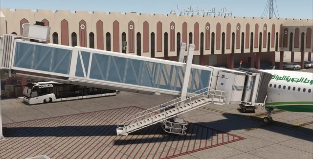 A core feature of this scenery is the hand-drawn ground textures. AZRSIM has taken the effort to carefully design each texture to achieve a high level of realism and detail. These textures form the foundation for the entire scenery and significantly contribute to the feeling of actually being at Basra International Airport. The ground textures include realistic markings, signs of wear, and details one would expect at a real airport. - Custom Jetways: