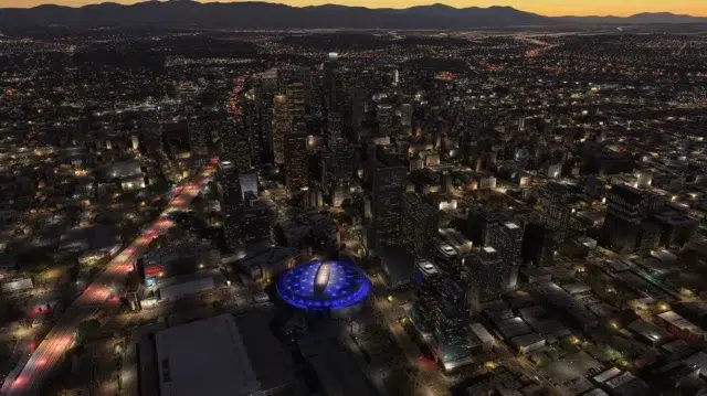 Los Angeles: Offers over 60 handcrafted building models, night effects, bridges, cranes, and banks. Includes SoFi Stadium, which can be activated/deactivated via a separate app. Compatible with iniBuilds KLAX, with the LA city scenery layer set below. Size: 502.52MB, Price: €6.50 (+VAT if applicable)