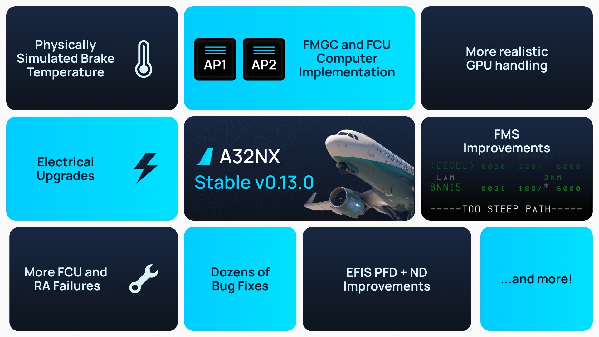 FlyByWire Simulations has released a major update for both its flagship aircraft: the A380X Alpha and the A32NX Stable version 0.13.0. The A380X Alpha continues to evolve with deeper system fidelity, including improved FCU functionality, clearer FMS layouts, and new failure modes. Enhancements to the electronic flight bag (EFB), sharper visual textures, more realistic wingflex, and refined hydraulic and engine simulations offer a significantly more immersive flying experience. This alpha release reflects FlyByWire’s commitment to replicating the A380’s complex systems with increasing realism.