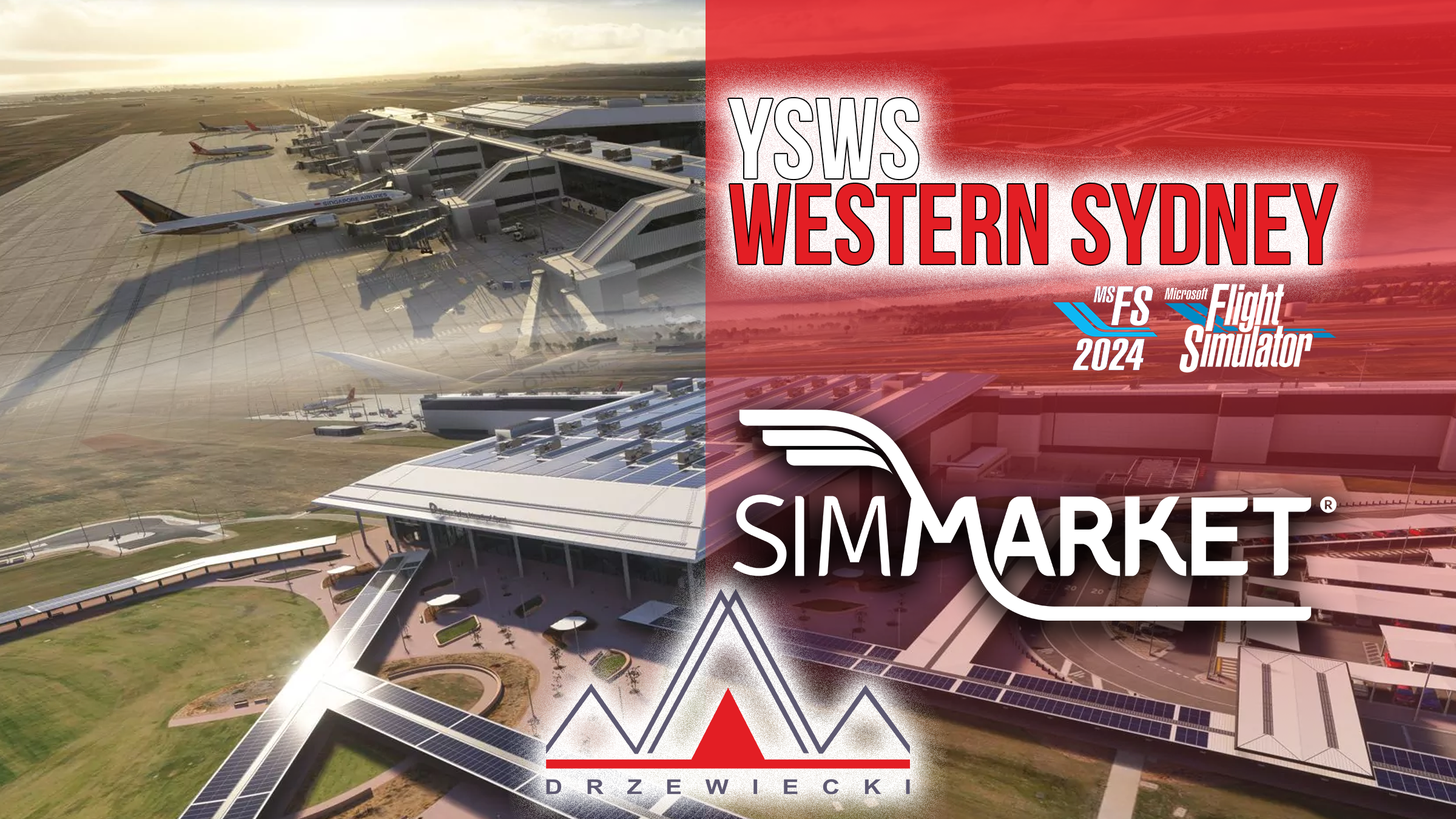 Drzewiecki Design landed in Australia to bring their newest international airport in Microsoft Flight Simulator. Officially named Nancy-Bird Walton International Airport (WSI/YSWS), YSWS Western Sydney Airport for MSFS20/24 is the first major greenfield airport development in Australia in decades—built to meet the long-term demands of Greater Sydney and beyond. Situated in the heart of the ambitious Western Sydney Aerotropolis, the airport operates 24/7 with a 3.7 km runway and a high-capacity terminal, serving both passenger and cargo traffic with state-of-the-art infrastructure.