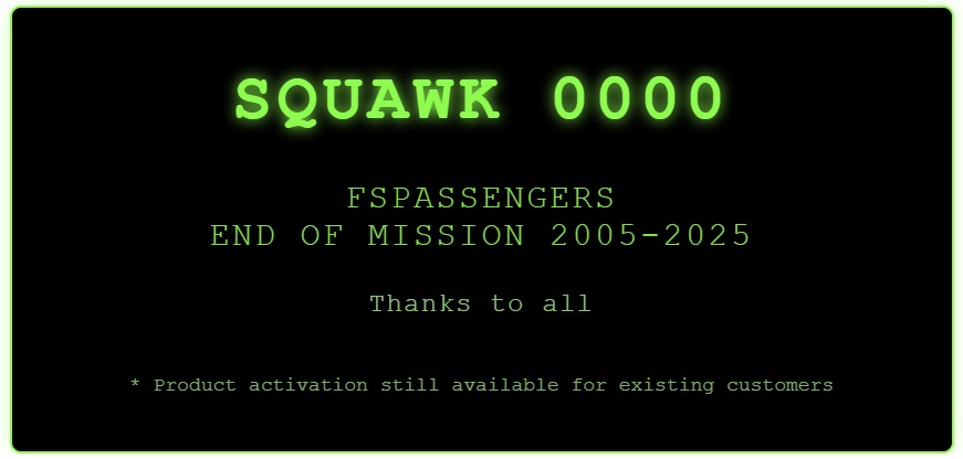 Dan, the developer of the iconic FsPassengers add-on, has officially announced the end of the project after two decades of existence. Launched in 2005 for FS2004 and later adapted to FSX and Prepar3D, FsPassengers brought a unique career mode, passenger management, and in-flight realism that became a favorite for thousands of simmers worldwide. Product activation remains available for existing customers, but active development and community support are now discontinued.