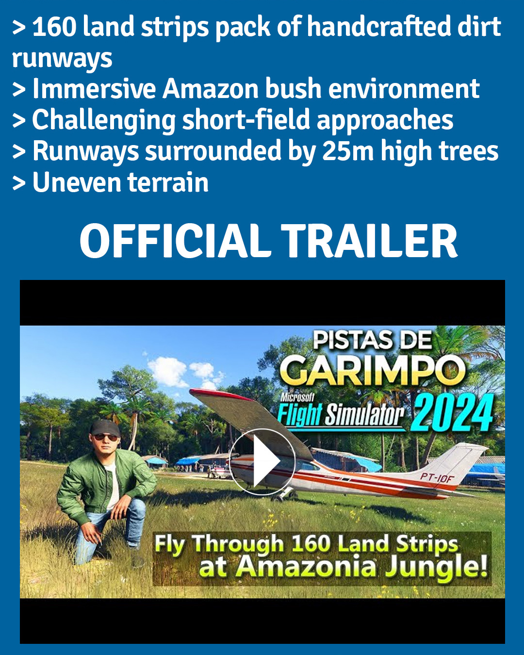 The PC-6 is a true legend among STOL aircraft, capable of landing almost anywhere, from alpine valleys to jungle strips. Pair it with the Garimpo airstrips deep in the Brazilian Amazon and you’ve got the ultimate bush flying combo — challenging, scenic, and endlessly replayable.