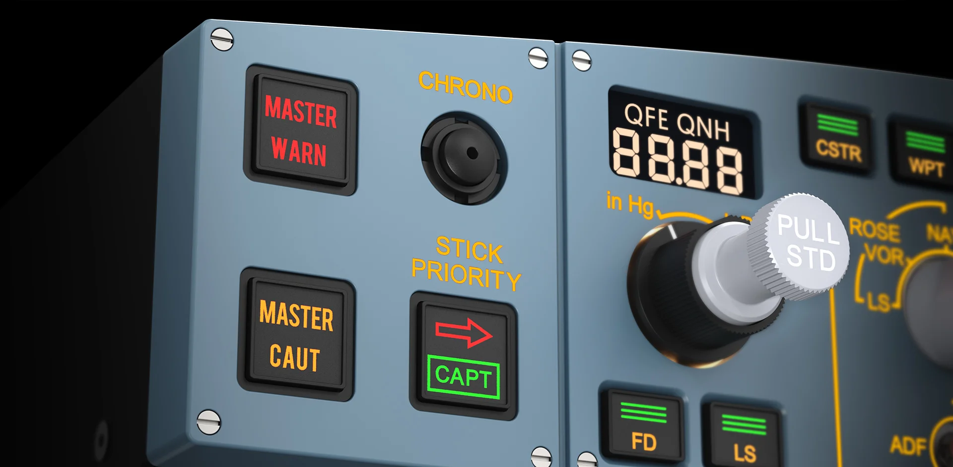 This corresponds to the original Airbus A320 glareshield, and I must emphasize it because this feature is simply not present on competing products.