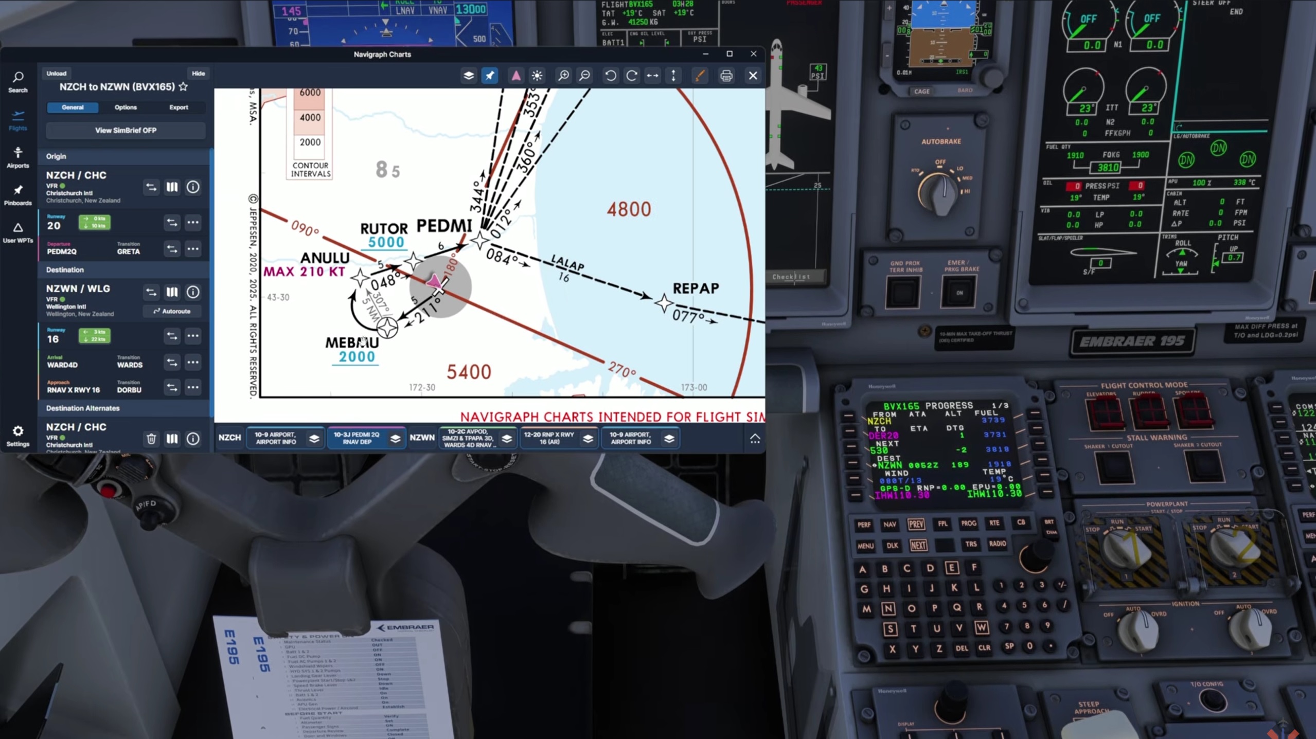 RNP (Required Navigation Performance) approaches demand a higher degree of accuracy than conventional RNAV procedures. The E195’s ability to track complex curved segments into Wellington’s challenging terrain environment provides a strong test case for avionics fidelity within the FSS implementation.