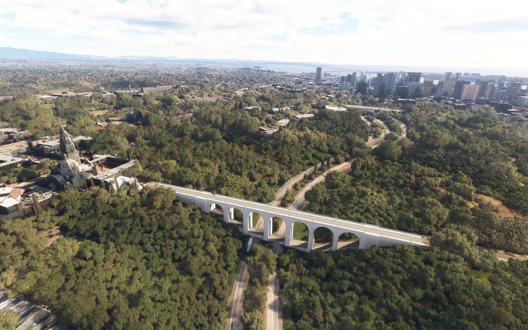Even in MSFS 2024, bridges still mostly look anything but appealing. This is mainly due to the fact that satellite radar images can only depict bridges from above. This technique creates unsightly and often unrealistic bridge structures from a side perspective, which are unattractive to sim pilots, especially at low altitudes. A good example of this is the Interstate Bridge over the Columbia River north of Portland, which is flown over during the approach to Portland International Airport (KPDX, superbly implemented by iBlueYonder and FlightBeam Studios).