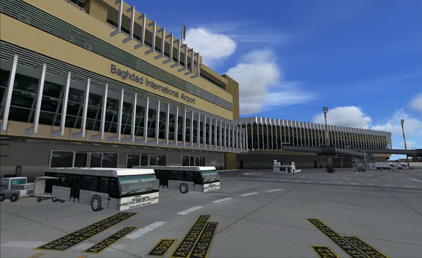 Orientalsim released Baghdad International airport as a FS2004 scenery. It features all main buildings, photoreal textures, ground vehicules and more.. Available at simMarket.