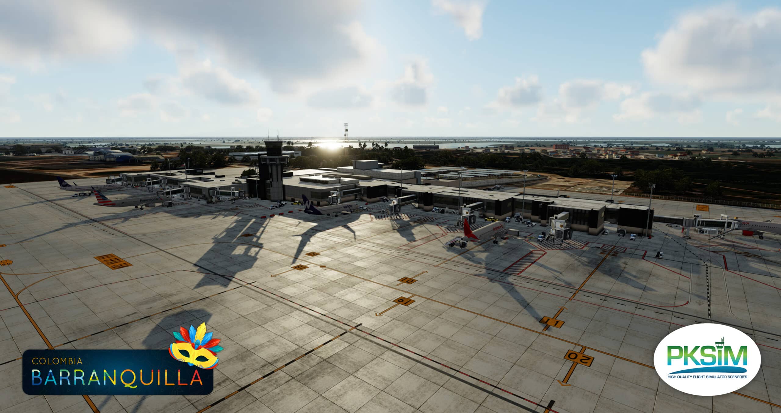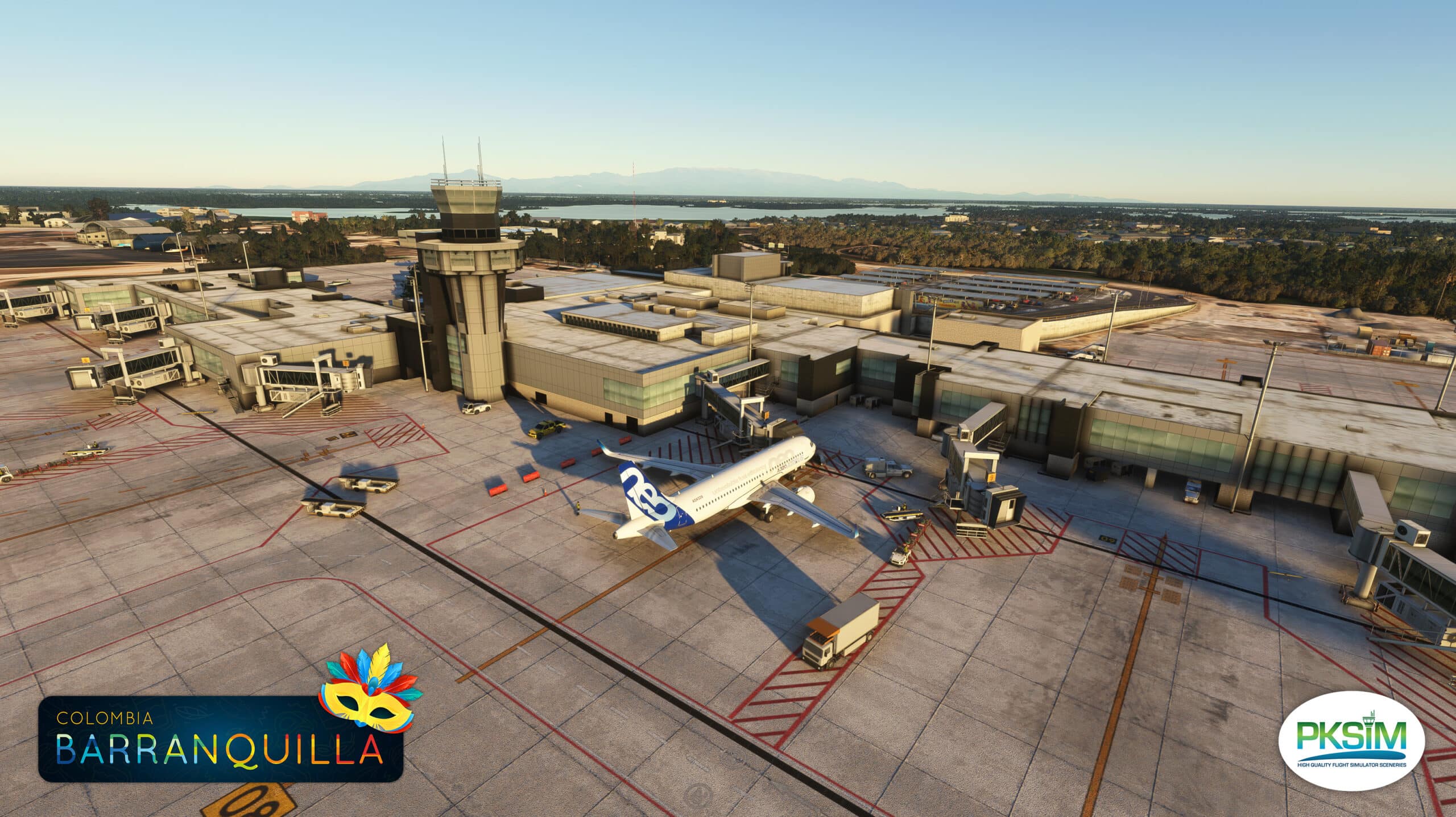 At the North of Colombia between Cartagena and Santa Maria, the latest scenery of PKsim covers the airport of Barranquilla SKBQ for P3D5 and P3D4.