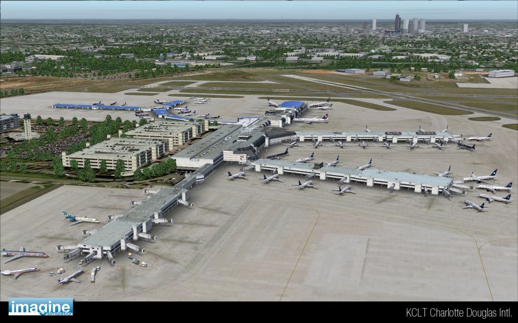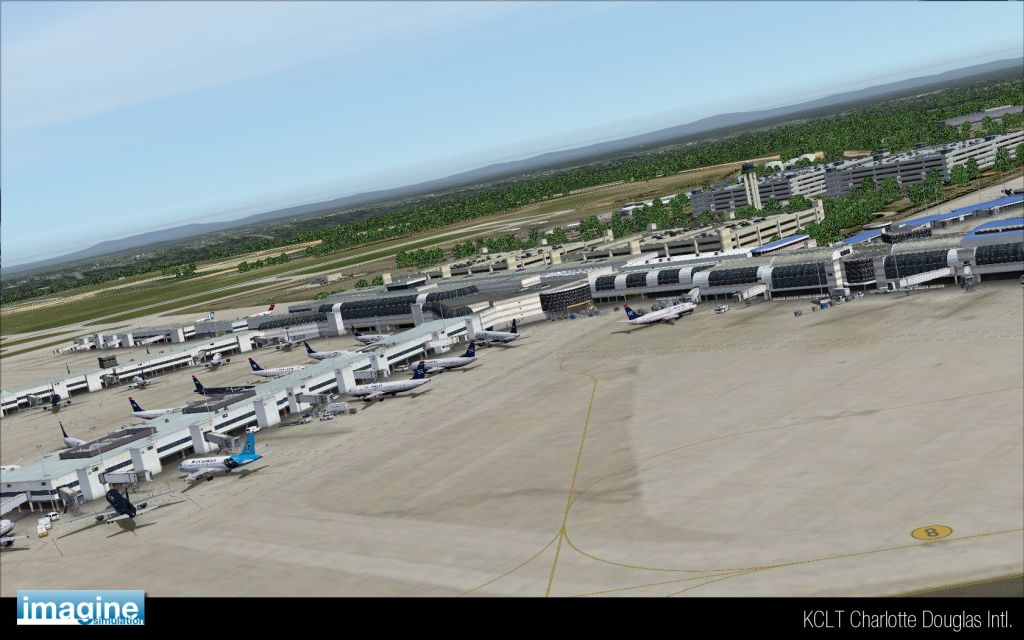 ImagineSim‘s latest release for Microsoft Flight Simulator 9 is a rebuild of their Charlotte Douglas International Airport, KCLT, in North Carolina, USA. With 5cm/pixel texturing