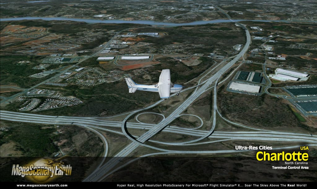 The growing collection of MegaScenery Earth Ultra Res City photoreal sceneries include now Charlotte. The biggest city of North Carolina, USA, is now covered with high definition