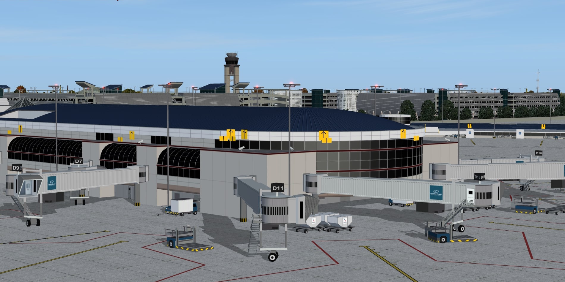 Before KORD Chicago O’Hare, FSDreamTeam keeps on working on KCLT Charlotte / Douglas airport in North Carolina. The buildings details and the curtain wall glass
