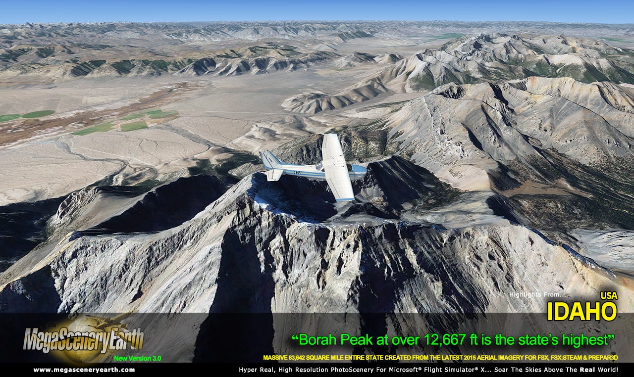 In the new version 3 series of MegaScenery Earth, it’s now the US State Idaho that is covered with photoreal textures and custom mesh at high resolution. Still