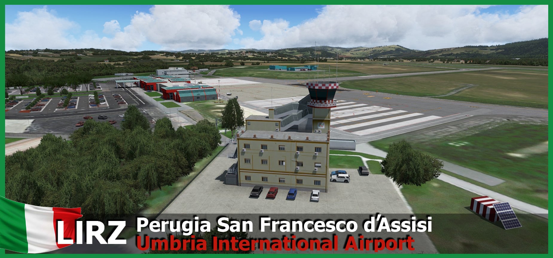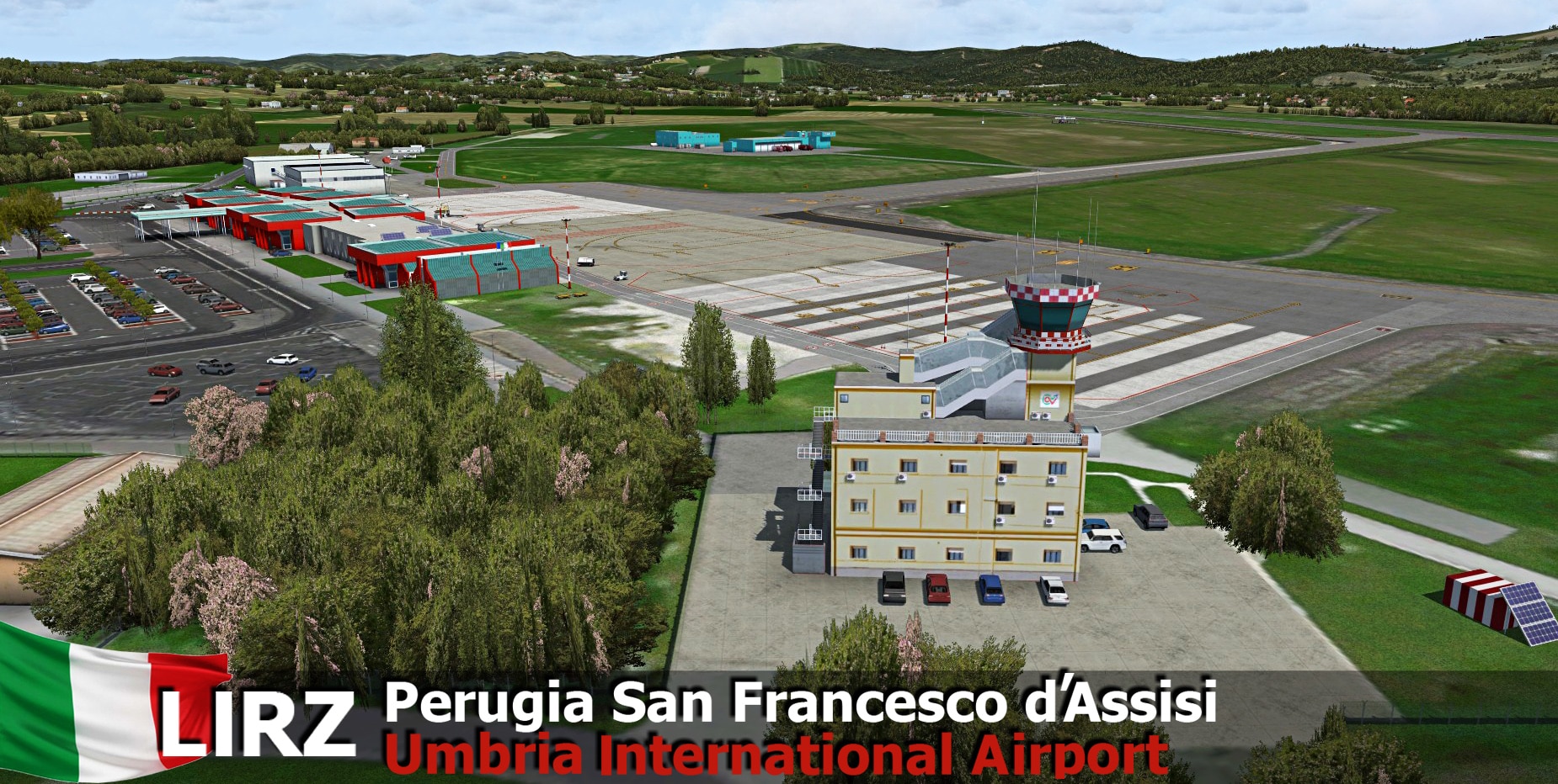 In Umbria province, Perugia airport LIRZ serves the important and beautiful city in Italy. RFscenerybuilding made their scenery with a large landclass and many airport