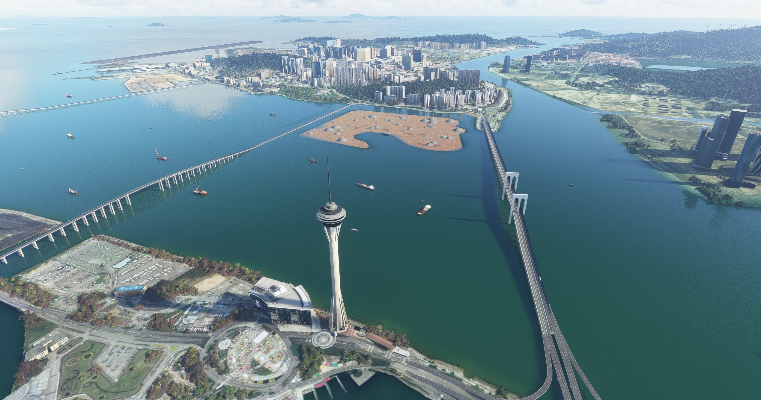 Macau scenery for MSFS designed by SamScene brings numerous and realistic landmarks in the Chinese city, various bridges and even its detailed airport VMMC is