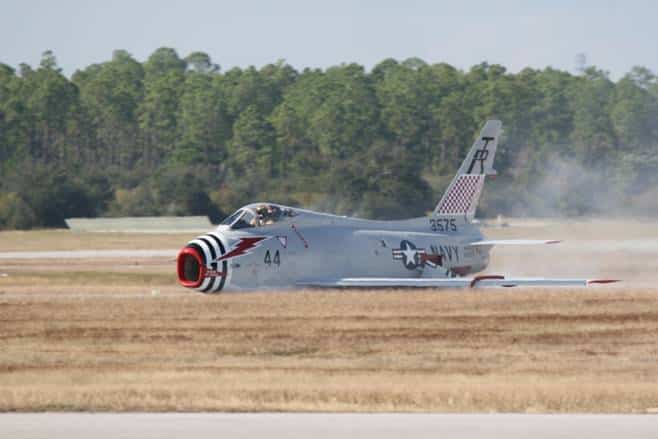 Found on the Avweb news flash this morning a little article about a private owner of a beautiful F-86 Sea Fury, coming in for landing
