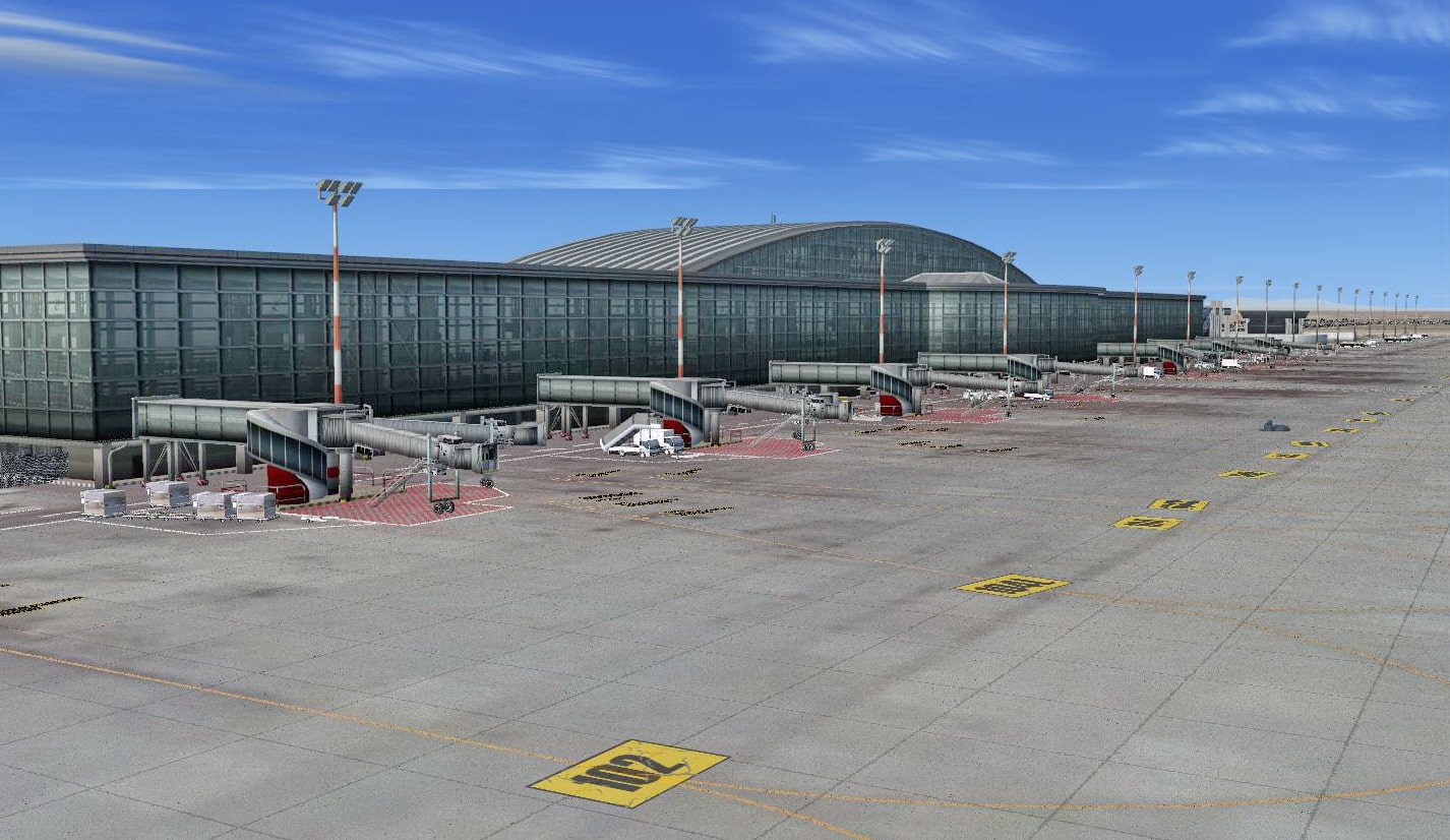 All the main buildings of Tehran Imam Khomeini airport (OIIE) are accurately designed with photoreal texture on the Gmax polygon terrain. Airport objects, detailed jetways and
