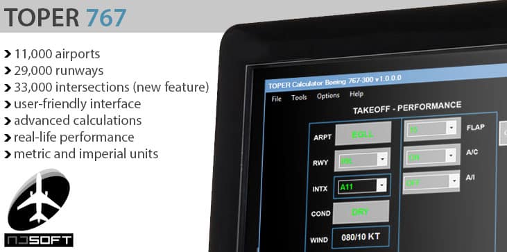 Before you fly a 767, a useful utility appeared at simMarket store : the B767 Takeoff Performance Calculator computes the V Speeds reference according to your flaps
